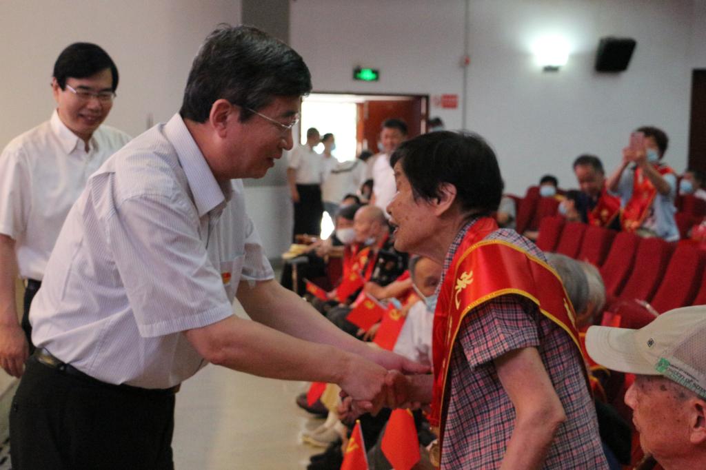 校長(zhǎng)李金林為老黨員頒發(fā)“光榮在黨50年”紀(jì)念章。劉虹 攝
