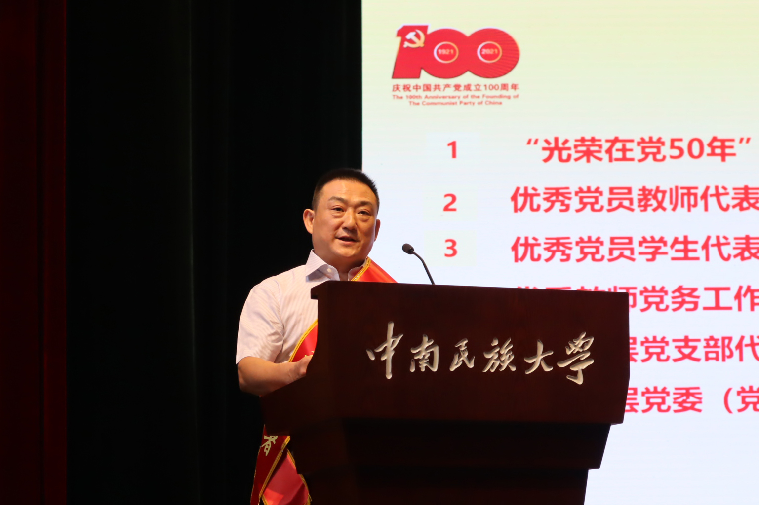 邊境指出,100年來(lái),中國(guó)共產(chǎn)黨團(tuán)結(jié)帶領(lǐng)人民創(chuàng)造了中華民族發(fā)展史、人類社會(huì)進(jìn)步史上最為璀璨輝煌的奇跡。在中國(guó)共產(chǎn)黨的領(lǐng)導(dǎo)下,中南民族大學(xué)走過70年的辦學(xué)歷程,為黨和國(guó)家培養(yǎng)社會(huì)主義建設(shè)者和接班人作出了應(yīng)有的貢獻(xiàn)。成績(jī)來(lái)之不易,未來(lái)更需努力。站在新的起點(diǎn),推進(jìn)學(xué)校各項(xiàng)事業(yè)持續(xù)高質(zhì)量發(fā)展面臨新的機(jī)遇和挑戰(zhàn),要以高質(zhì)量的黨建引領(lǐng)推動(dòng)學(xué)校實(shí)現(xiàn)高質(zhì)量發(fā)展。他強(qiáng)調(diào),要堅(jiān)持把黨的政治建設(shè)擺在首位,結(jié)合黨史學(xué)習(xí)教育加強(qiáng)黨的創(chuàng)新理論學(xué)習(xí),深刻感悟習(xí)近平新時(shí)代中國(guó)特色社會(huì)主義思想的偉力,更加自覺地用以武裝頭腦、指導(dǎo)實(shí)踐、推動(dòng)工作;要堅(jiān)持和加強(qiáng)黨對(duì)高校的全面領(lǐng)導(dǎo),鞏固好發(fā)展好發(fā)揮好黨的組織優(yōu)勢(shì),為全面貫徹落實(shí)黨的教育方針提供堅(jiān)強(qiáng)政治保證和組織保證;要堅(jiān)持把立德樹人作為根本任務(wù),以鑄牢中華民族共同體意識(shí)為主線,進(jìn)一步加強(qiáng)和改進(jìn)思想政治工作,著力構(gòu)建以學(xué)生成長(zhǎng)成才為中心的“三全育人”生態(tài)系統(tǒng)。他號(hào)召大家更加緊密地團(tuán)結(jié)在以習(xí)近平同志為核心的黨中央周圍,在國(guó)家民委黨組和湖北省委、省政府的領(lǐng)導(dǎo)下,扛起新使命、彰顯新?lián)?dāng),不忘初心、奮發(fā)有為、扎實(shí)工作,不斷開創(chuàng)學(xué)校事業(yè)發(fā)展的新局面。