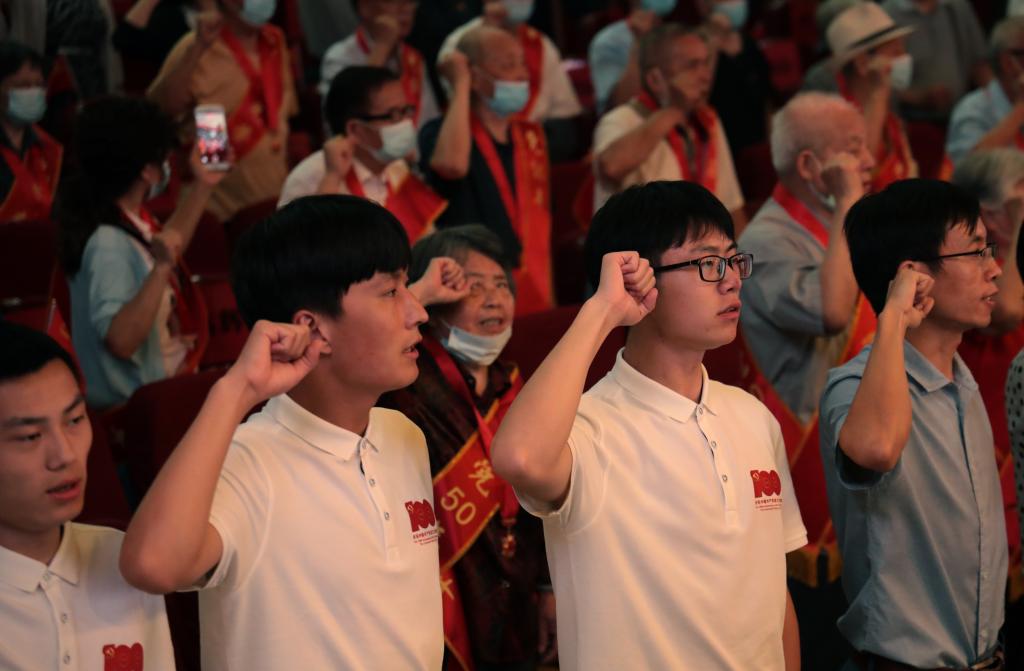 榮獲“光榮在黨50年”紀(jì)念章黨員代表、離退休工作處黨委離休黨支部書記、87歲老同志朱開祿,飽含深情地回顧了老黨員群體的入黨初心和在黨經(jīng)歷,抒發(fā)了對(duì)黨永遠(yuǎn)忠誠(chéng)的堅(jiān)定信仰、為人民服務(wù)的使命擔(dān)當(dāng)。優(yōu)秀共產(chǎn)黨員教工代表、化材學(xué)院李琳,優(yōu)秀共產(chǎn)黨員學(xué)生代表、計(jì)科學(xué)院劉浩,優(yōu)秀黨務(wù)工作者代表、采購(gòu)與招投標(biāo)中心黨支部書記黃仕清,先進(jìn)基層黨支部代表、電信學(xué)院教工創(chuàng)新團(tuán)隊(duì)黨支部副書記崔勇強(qiáng),先進(jìn)基層黨委(黨總支)代表、美術(shù)學(xué)院黨委書記劉子元等同志分別發(fā)言,匯報(bào)了在黨的光輝指引下各自的工作、學(xué)習(xí)經(jīng)歷和體會(huì),及黨建工作的先進(jìn)經(jīng)驗(yàn)和做法,表達(dá)了為學(xué)校事業(yè)發(fā)展、為中華民族偉大復(fù)興努力奮斗的信心和決心。