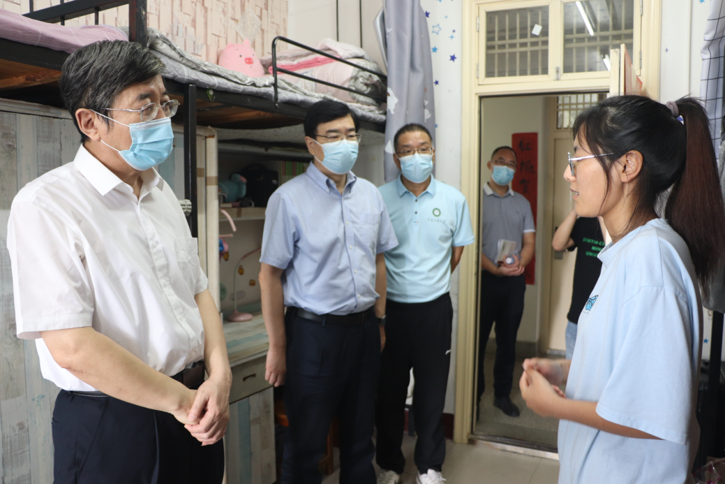 在學生寢室,校領導了解了同學們的住宿環境和生活情況,充分肯定了同學們對防疫工作的支持,希望同學們繼續遵守防疫規定,積極培育互幫互助的寢室文化,共同維護安全穩定的校園環境;詳細詢問了各年級同學的學習或就業情況,希望低年級同學打牢專業基礎、多去自習室、多進實驗室,鼓勵高年級同學樹立正確的就業觀,特別是有意向考研的同學合理選擇報考院校,積極備考,爭取早日“上岸”。他們還希望同學們多參加體育鍛煉,在強身健體中永葆青春朝氣。