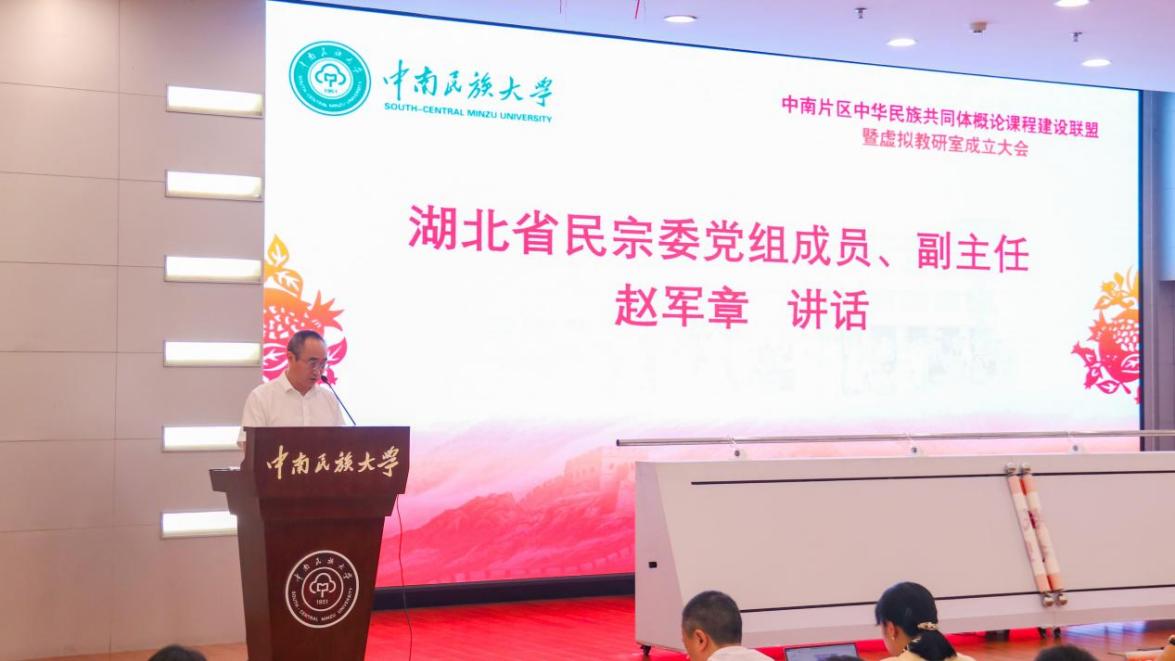 9月24日上午,由國家民委教育司、湖北省民宗委、湖北省教育廳和武漢市民宗委指導,我校主辦的中南片區中華民族共同體概論課程建設聯盟暨虛擬教研室成立大會在我校學術交流中心召開。國家民委教育司一級巡視員李學鋒,湖北省民宗委黨組成員、副主任趙軍章,湖北省委教育工委組織處處長、一級調研員喬志強,武漢市委統戰部副部長、市民宗委黨組書記、主任朱紹華,浙江大學國家制度研究院沈桂萍教授,我校黨委書記邊境,黨委副書記、校長劉義,黨委副書記、副校長宋發軍,以及來自江西、河南等12個省市35所高校的專家學者以及校內相關單位領導及師生代表出席本次大會。會議由我校黨委副書記、校長劉義主持。