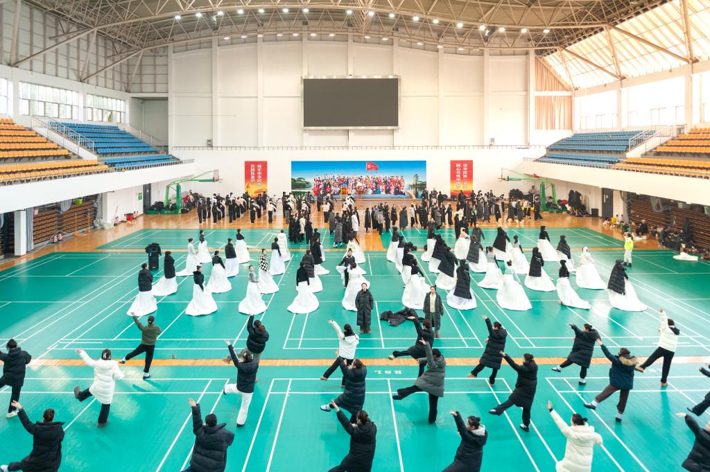 參演人員在我校體育館排練。黨委宣傳部 供圖