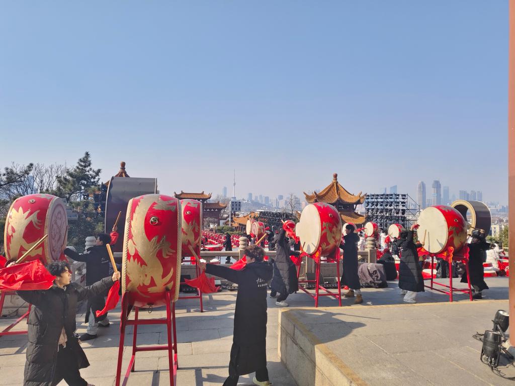 黃鶴樓前,千人鼓陣齊鳴。圖源湖北日報