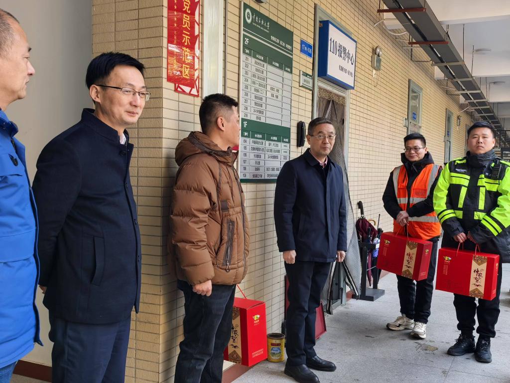 在學校總值班室、門崗值班室和校園110報警中心, 劉義向堅守崗位的校衛隊員和值班人員送上新春祝福和節日慰問,對大家堅守一線、辛勤工作表示感謝。他強調,要貫徹落實上級關于安全穩定的部署要求,加強值班值守和應急處突,保證各項工作有序運轉,切實維護假期校園安全穩定。