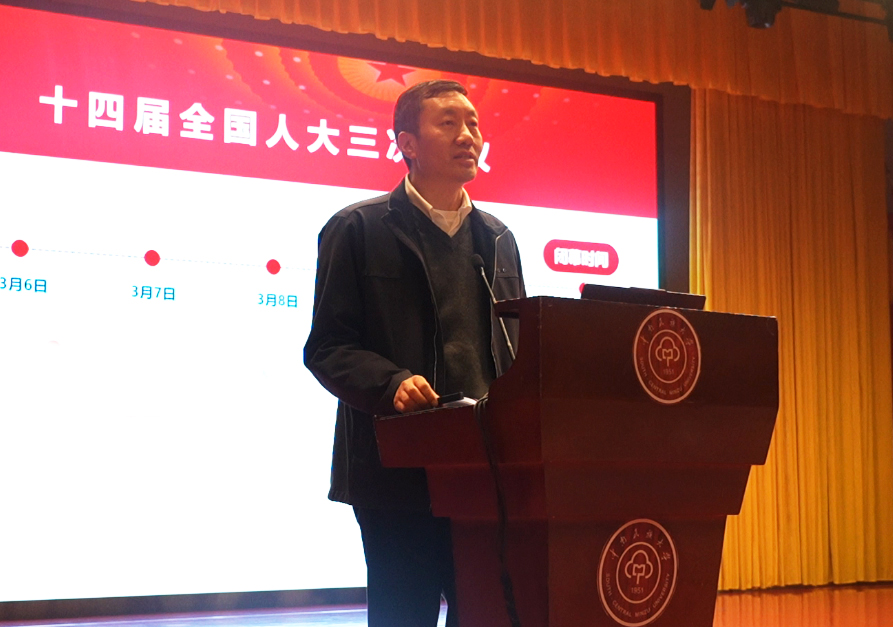 韓民春教授作輔導(dǎo)報告。 黨委宣傳部供圖