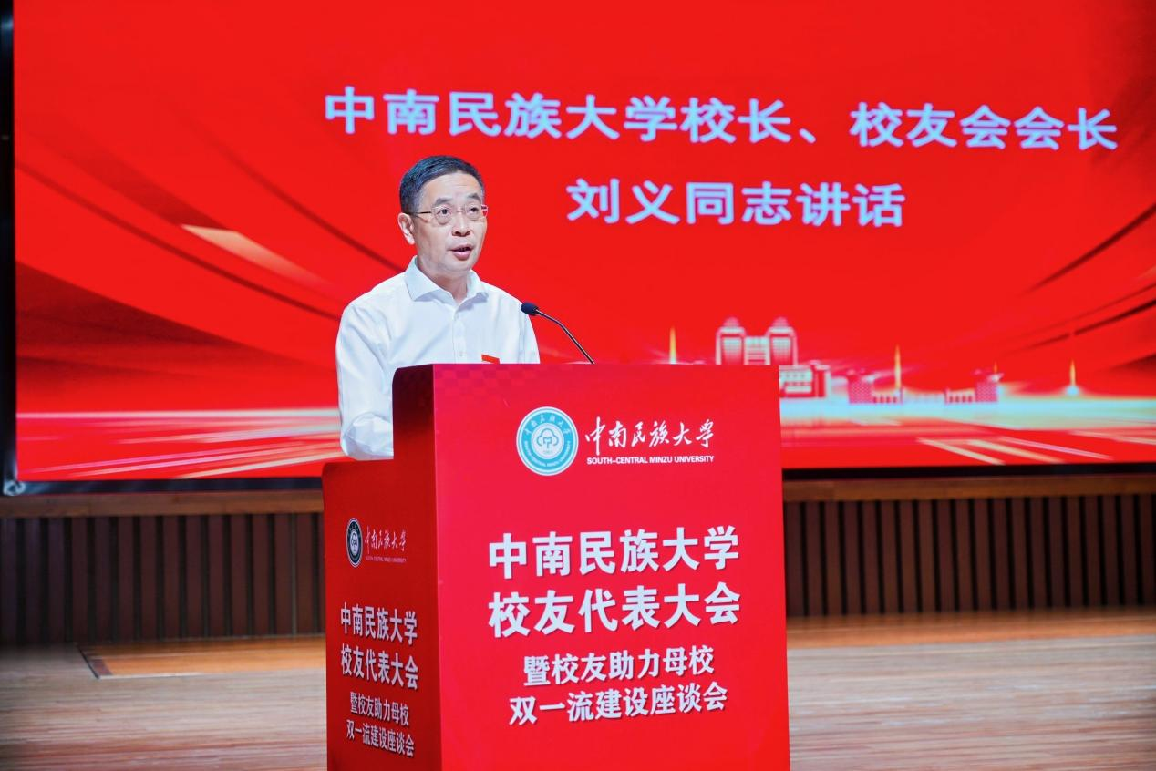 劉義在大會上發表講話,他向長期以來始終心系母校、奉獻母校的校友和校友組織表示誠摯感謝。他回顧了學校75年的發展成就,學校學科門類豐富,學科建設成果顯著,國際交流、校地校企合作不斷拓展。如今正穩步邁向 “雙一流” 建設目標。這些成績的取得都離不開每一位校友的關心與支持。他表示作為新任會長,將與校友們一起繼續踐行“服務校友、服務母校、服務社會”的宗旨,構建起更加緊密的校友聯絡網絡,凝聚共識,助力學校“雙一流”建設;聚焦學科優勢,推動產學研深度融合,構建可持續發展機制,提升學校影響力,以校友之力筑牢發展根基;打造“學校+校友”命運共同體,為教育強國和民族復興貢獻力量。