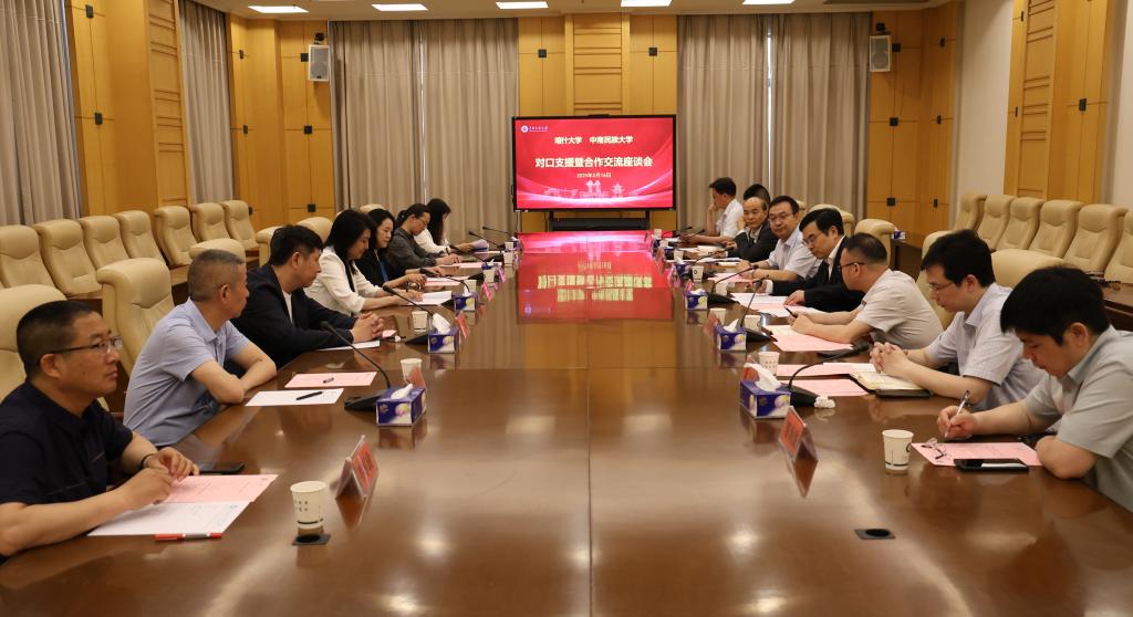 徐業(yè)勤對喀什大學一行的到訪表示熱烈歡迎。他從辦學底蘊、辦學基礎、辦學特色3個方面介紹了我校基本情況。他指出,近年來,我校積極響應國家戰(zhàn)略,持續(xù)加大與新疆各界的合作交流力度。學校與喀什大學建立合作關系以來,雙方秉持務實高效、互信共贏的合作態(tài)度,通過聯(lián)合舉辦各類比賽、科研平臺聯(lián)合申報、人才聯(lián)合培養(yǎng)等方式,在校際間、學院間、師生間形成了廣泛的合作共識,結下了深厚的合作友誼。希望通過此次合作交流,兩校能夠進一步挖掘合作潛力、精準對接供需,實現(xiàn)優(yōu)勢互補、攜手并進的目標,打造國家民委院校攜手民族地區(qū)兄弟院校共同發(fā)展的典范。