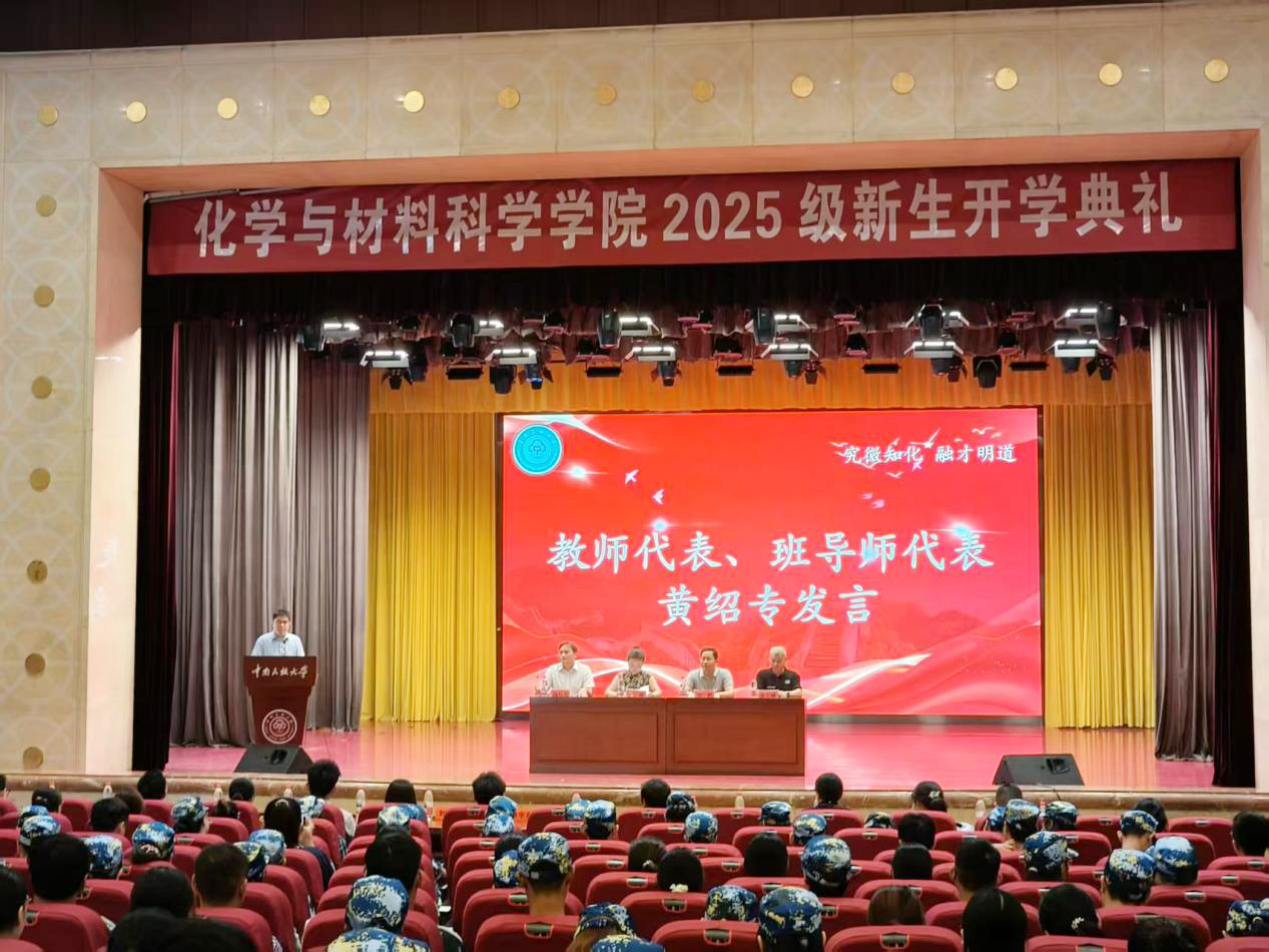 化學(xué)與材料科學(xué)學(xué)院教師代表、班導(dǎo)師代表黃紹專發(fā)言。學(xué)院供圖