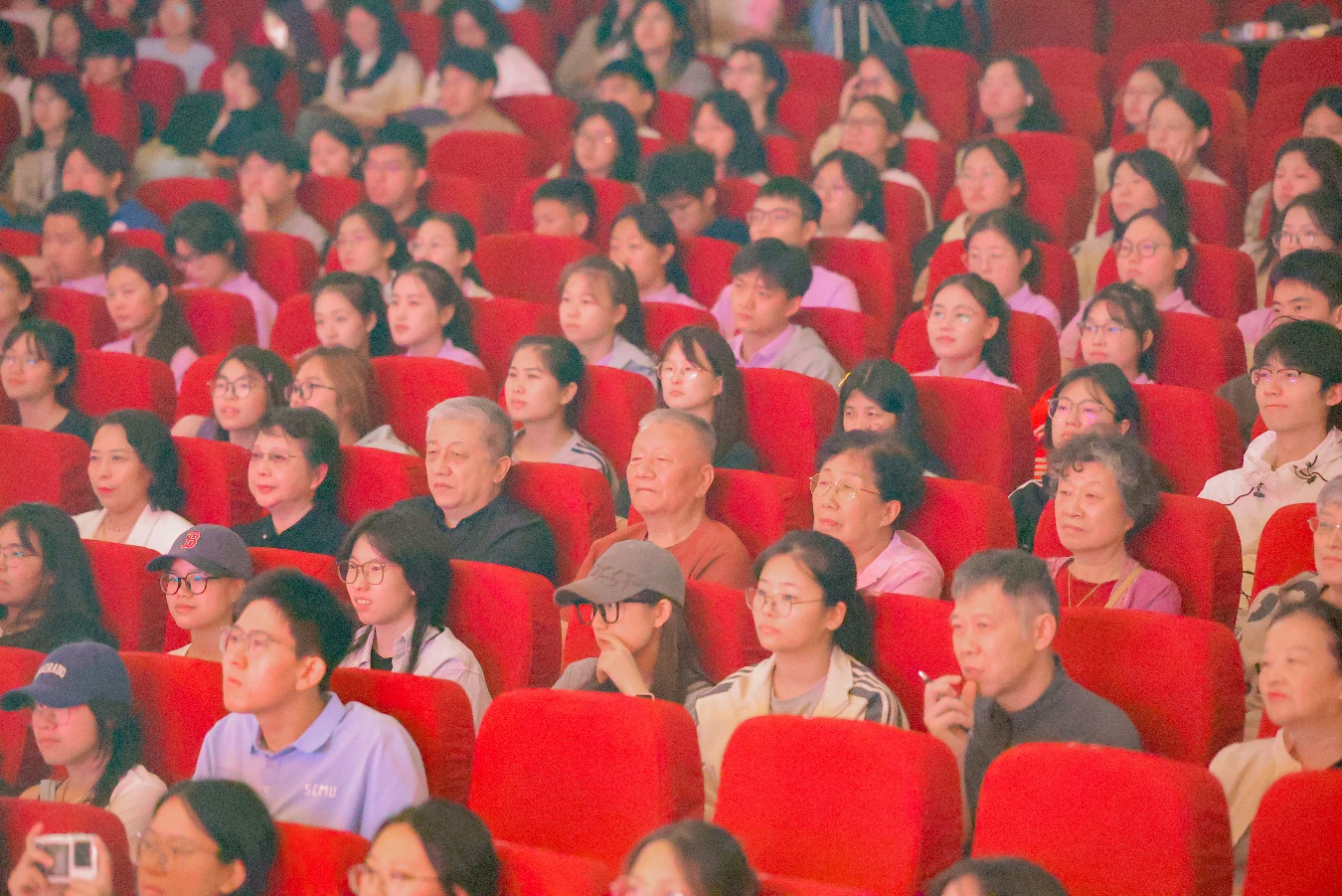 當(dāng)日下午,大禮堂內(nèi)莊重溫馨。白瑞西先生家屬、新進教職工代表、研究生支教團全體在校學(xué)生、部分教師和學(xué)生代表共同觀看首場演出。在戲劇藝術(shù)的沉浸演繹中,青年教師們溯源師者初心,感悟教育使命。教育家家屬的到場,讓歷史敘事更顯真實厚重,為現(xiàn)場觀眾搭建起跨越時空的精神對話。當(dāng)晚,新生專場在大禮堂開啟。話劇通過直播形式同步呈現(xiàn)于南湖中心運動場,2025級新生共同觀看了這場特殊的“大思政課”。