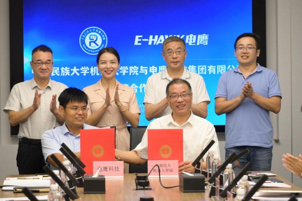 會(huì)上,宋發(fā)軍代表學(xué)校與湖北電鷹科技集團(tuán)簽訂戰(zhàn)略合作協(xié)議。