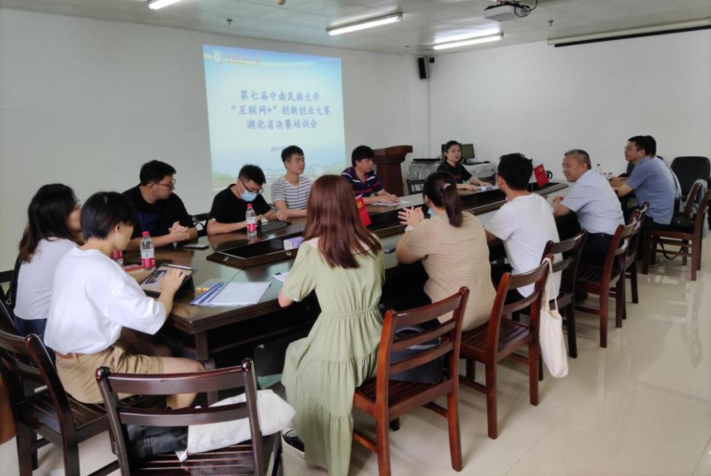 在精心備賽的過程中,學校注重特色,鑄牢中華民族共同體意識。大賽啟動以來,創新創業學院院長潘澤江深入走訪多個學院,悉心培育有潛力的特色項目,并和武漢市青創導師高澤金老師一起多次對創業團隊進行現場指導。我校幾乎每個創業團隊都包含多民族學生,其中學工部董浩燁老師指導的民族文化品牌“民小影文化傳播—民族文化傳播的領跑者”獲湖北省銅獎。