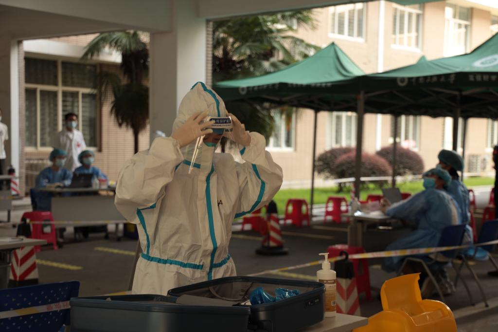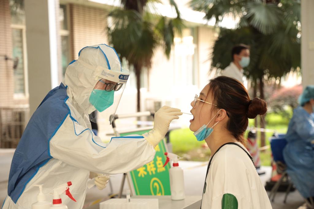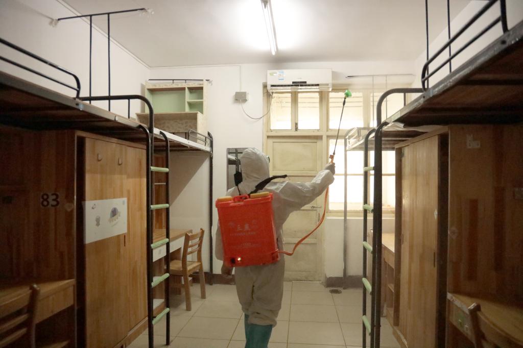 秋陽似火。15時整,隨著現(xiàn)場總指揮、校長李金林一聲令下,演練在酷熱中拉開帷幕。在學校正大門,同學們刷臉,測溫,出示健康碼,依次進入學校。一位同學體溫“異常”,被迅速引導至臨時觀察點,校醫(yī)院工作人員對其進行全身消毒,復查體溫,詢問相關(guān)事項,通知學院輔導員到場。體溫復查“異常”,“發(fā)熱”學生由社區(qū)專用車和專職人員送至指定醫(yī)院發(fā)熱門診進一步診治,消殺人員對現(xiàn)場和相關(guān)人員進行了全面消毒。在南區(qū)13棟宿舍,模擬了密接學生排查核實、應急響應、實施轉(zhuǎn)運及衛(wèi)生消殺的場景。在10號教學樓下,模擬了突發(fā)疫情下全校核酸檢測的全流程。此外,洪山區(qū)相關(guān)單位還檢查了食堂、學生宿舍、防疫物資儲備點、醫(yī)學觀察點的人員配置、物資儲備和設施安全等情況。