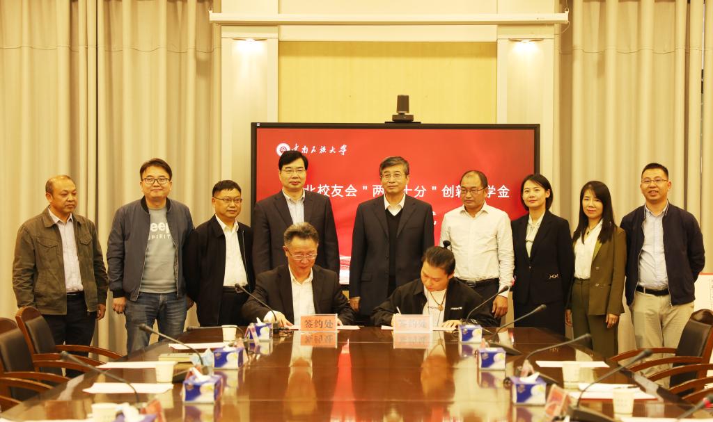 肖養(yǎng)孝校友簡要分享了自己從學(xué)校畢業(yè)后的生活與工作經(jīng)歷,感謝母校對自己的培養(yǎng),希望捐款可以惠及更多來自邊遠地區(qū)的學(xué)生和品學(xué)兼優(yōu)的學(xué)生。韋忠南表示,“兩點十分”創(chuàng)新獎學(xué)金是湖北校友會為母校70華誕作出的首次捐贈。此次捐贈只是“開個頭,起個步”,未來會將獎學(xué)金長期設(shè)立下去,以此鼓勵學(xué)弟學(xué)妹們不斷學(xué)習(xí)、進步、成長,在各個領(lǐng)域嶄露頭角。