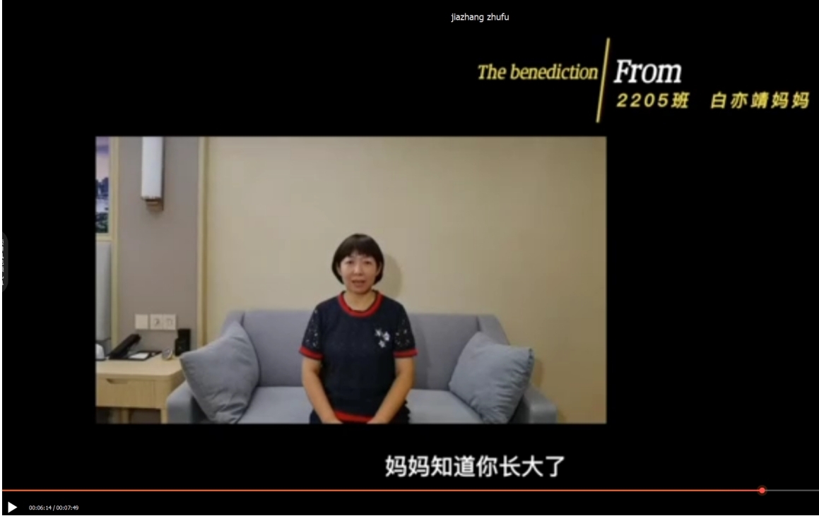 新生開學典禮上,家長發來祝福視頻。 電信學院供圖
