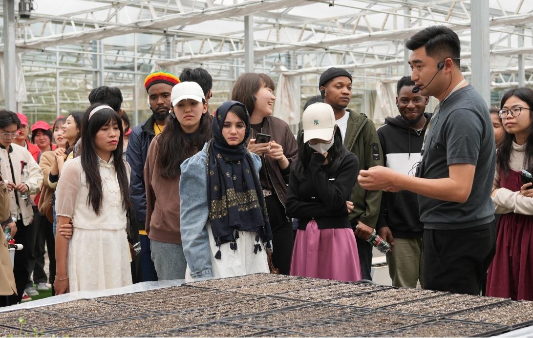 留學(xué)生們參觀向家村現(xiàn)代農(nóng)業(yè)產(chǎn)業(yè)園。 王法鈞攝