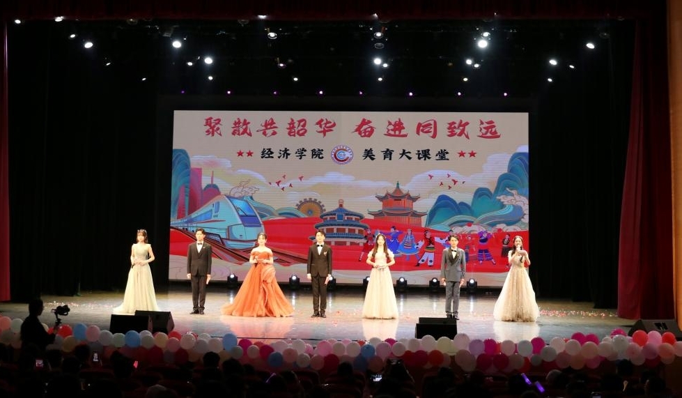 4月14日晚,經濟學院在大禮堂舉辦2023年鑄牢中華民族共同體意識實踐教育——美育大課堂“聚散共韶華 奮進同致遠”文藝晚會。經濟學院領導班子成員,教師代表,2019級、2022級全體師生和其他年級學生代表一同觀看了晚會。