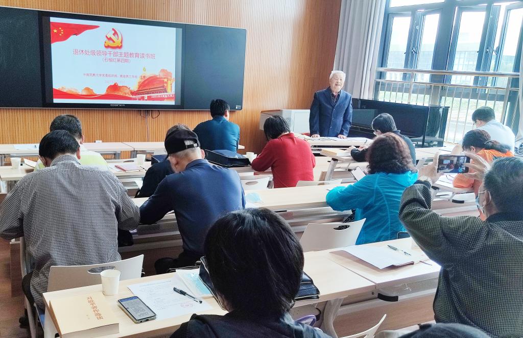 為深入推進開展學習貫徹習近平新時代中國特色社會主義思想主題教育,5月17日至31日,離退休工作處黨委舉辦主題教育石榴紅讀書班,全面、系統、深入學習習近平新時代中國特色社會主義思想,切實把思想和行動統一到黨中央的精神上來,統一到學校黨委的決策部署上來。各退休黨支部、老年協會、關工委及各文體團隊負責人中曾擔任過處級領導干部的47名黨員同志參加了此次讀書班。