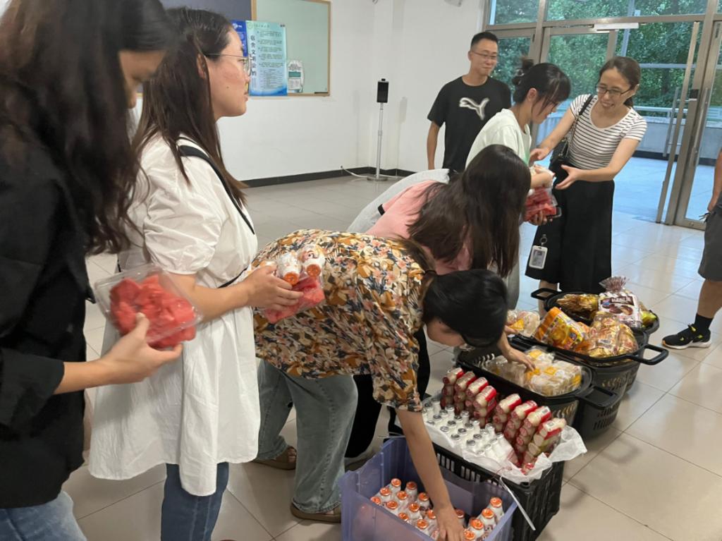 向?qū)W生發(fā)放防暑降溫食品。 馬克思主義學(xué)院供圖
