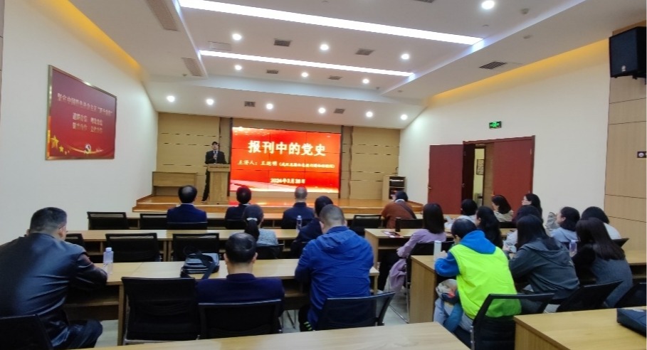 隨后,教師們聆聽了由湖北省收藏家協會執行會長、紅色報刊博物館特聘顧問王運明先生作的《報刊中的黨史》主題黨課。王運明從黨的百年歷史和偉大成就,講述了報刊在黨的歷史上的偉大作用。他表示黨報黨刊是理論宣傳的主陣地,中國革命的“指向標”,是時代脈搏的“感受器”。新時代的黨報黨刊仍然是黨的思想方針政策傳播的主要平臺,是凝聚人心全面建設社會主義現代化國家和實現中華民族偉大復興的重要武器。把黨報黨刊閱讀好、學習透徹是增強我們干事能力和本領的重要途徑,是每位黨員干部、教師應具備的基本功。我們應當充分利用紅色資源,讓黨報黨刊成為大家必備的“精神食糧”。