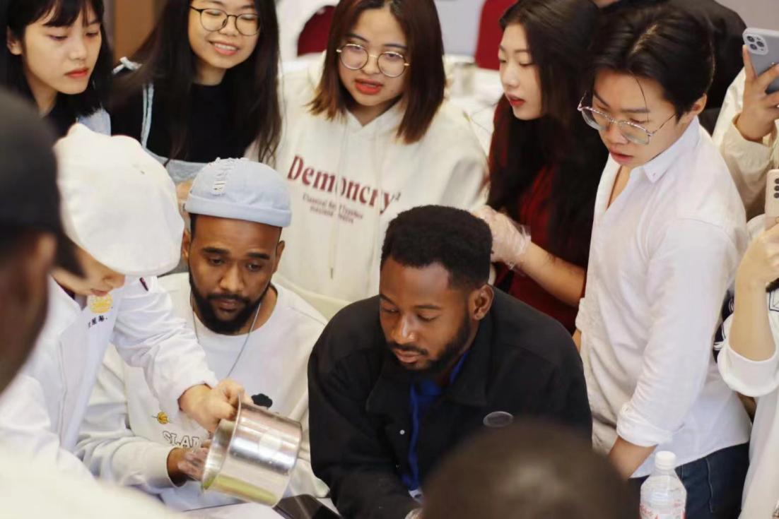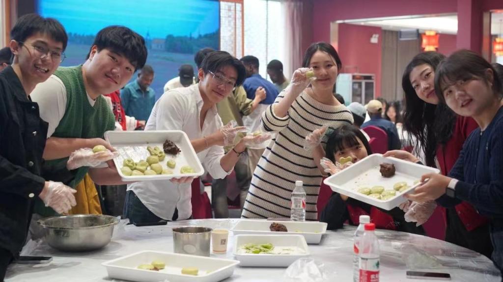 活動中,指導老師為留學生們講解了中國的清明節、寒食節的由來,以及節日期間的風俗文化。在制作青團的過程中,同學們不僅感受了艾草的獨特氣味,還親手用糯米粉、澄粉和艾草汁等食材混合揉制面團,包入豆沙餡,捏制出熊貓、艾草等各種形態的青團。來自盧旺達的KAMANZI JUSTUS表示,青團的制作過程十分有趣,口感和自己國家的一種用木薯粉做的點心十分相似,不同的是青團有一種春天的味道。