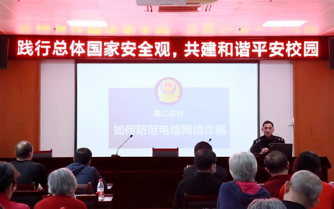 為增強離退休教職工的安全防范意識,維護校園安全穩定,4月16日,離退休工作處聯合保衛處、后勤保障處、民大社區,在東區教職工活動中心開展主題為“踐行總體國家安全觀,共建和諧平安校園”的校園安全知識講座。保衛處副處長朱溢,鐵箕山派出所派駐學校警務室四級警長羅浩、警官吳高濤應邀作安全知識宣講。講座由離退休工作處黨委書記張文軍主持,離退休老同志代表到場聽講。