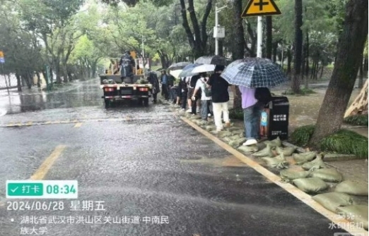 6月下旬以來,武漢市暴雨頻發。6月24日,后勤保障處根據武漢市應急管理局發布的強對流氣候災害預警信息,召開應急防汛專題工作會議,提前部署相關工作。6月28日上午8時18分,武漢市氣象臺發布暴雨橙色預警信號,中心城區有70毫米以上強降水。后勤保障處迅速啟動防汛應急響應機制,組織全員積極應對本輪強降雨,保障校園平安,保障師生員工生命財產安全。