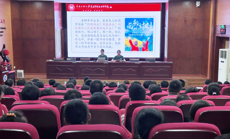 當(dāng)晚,宣講團(tuán)走進(jìn)興山一中,與中學(xué)生們面對(duì)面開展了題為“挺膺擔(dān)當(dāng),書寫鑄牢新篇章”的主題宣講。宣講團(tuán)成員們從青年視角出發(fā),分享了鑄牢中華民族共同體意識(shí)的深刻內(nèi)涵以及民大實(shí)踐、民大經(jīng)驗(yàn)。希望各位同學(xué)挺膺擔(dān)當(dāng),做民族團(tuán)結(jié)進(jìn)步事業(yè)的傳播者,做鑄牢中華民族共同體意識(shí)工作的踐行者。
