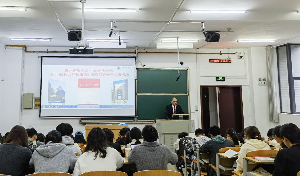 為深入學習貫徹習近平總書記在全國民族團結進步表彰大會上的重要講話精神,推動中南片區中華民族共同體概論課程建設聯盟和虛擬教研室發展,10月14日,我校中華民族共同體學院(研究院)中華民族共同體概論教研室主任裴圣愚帶隊赴湖北民族大學開展“共讀教材悟鑄牢”聯合教學教研活動。我校概論課教師代表趙夢涵、部分學生代表參加。本次活動分課堂教學交流和主題教研兩個環節。