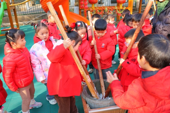 “砰”,一聲爆米花響,孩子們樂(lè)開(kāi)了花,親眼目睹了玉米粒在高溫與壓力的奇妙作用下瞬間化作蓬松的“米花云團(tuán)”。接著,各班幼兒陸續(xù)體驗(yàn)了“木版年畫(huà)”“打糍粑”等活動(dòng)。他們?cè)诶蠋煹闹笇?dǎo)下制作出一張張精美的年畫(huà),了解了傳統(tǒng)美食糍粑的制作過(guò)程。整個(gè)活動(dòng)都洋溢著快樂(lè)的節(jié)日氛圍,一張張稚嫩的小臉上綻放著燦爛的笑容,歡聲笑語(yǔ)回蕩在幼兒園的每個(gè)角落。