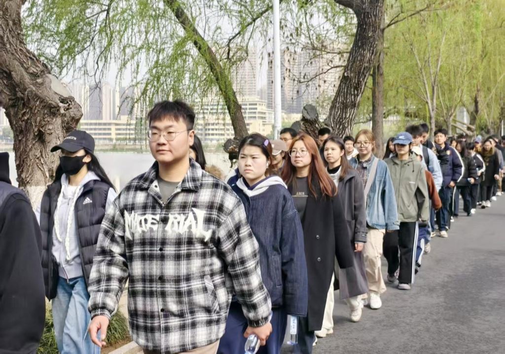 為緬懷偉人先進事跡,傳承前人奮斗精神,3月30日上午,我校90余名學生在國防教育學生工作委員會老師的帶領下,開展“清明追思礪壯志,青春同行強軍夢”主題清明追思徒步活動。隊伍從體育館出發,繞校一周,至民族學博物館,歷時3個小時。