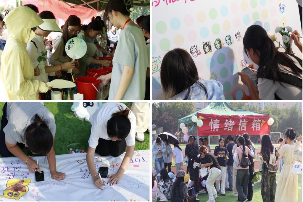 活動(dòng)現(xiàn)場(chǎng)精心設(shè)計(jì)的各類(lèi)環(huán)節(jié)吸引了眾多師生踴躍參與,氛圍熱烈溫馨。在創(chuàng)意表達(dá)區(qū),素白扇面經(jīng)同學(xué)們巧手調(diào)色、細(xì)膩渲染,蛻變?yōu)楠?dú)一無(wú)二的色彩斑斕漆扇,成為承載個(gè)人情感與奇思妙想的鮮活載體;空白涂鴉墻前,大家盡情釋放天馬行空的創(chuàng)意,以畫(huà)筆勾勒心情圖譜、具象化呈現(xiàn)內(nèi)心世界。“情緒信箱”與“頭腦特工隊(duì)”則化身安靜溫暖的“心靈驛站”,溫柔接納每一種情緒,認(rèn)真聆聽(tīng)每一個(gè)心聲,為師生提供了傾訴與療愈的空間。