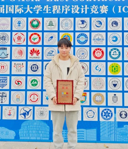 “不破不立,中道是慎”,希望得到突破的項升輝在2023年國際大學生程序設計競賽亞洲區總決賽中重新組隊。新團隊成員的專業技能雖然更扎實,但如何發揮團隊合力卻是一個不小的挑戰。項升輝帶領隊員們對競賽中可能會出現的各類算法問題進行針對性的特訓,逐個擊破,夯實基礎。每次訓練結束后,他都主動復盤,揪出團隊的薄弱點,用題海戰術補齊短板。最終,項升輝團隊奪得亞洲區銅牌,ACM實驗室也迎來了近幾年的第一枚國際大學生程序設計競賽亞洲區總決賽的銅牌。項升輝感慨道:“回望這段歷程,我內心充滿了感激,感激老師的指導與隊友的陪伴,也感激學校和學院為我們提供了一個可以自由學習、積極競賽和不斷成長的舞臺。”此后,項升輝先后斬獲了第十四屆藍橋杯全國軟件和信息技術專業人才大賽全國總決賽C/C++程序設計大賽B組一等獎、2024年中國大學生程序設計競賽全國邀請賽金獎、2024年國際大學生程序設計競賽全國邀請賽銀獎等多項國家級編程賽事獎項。