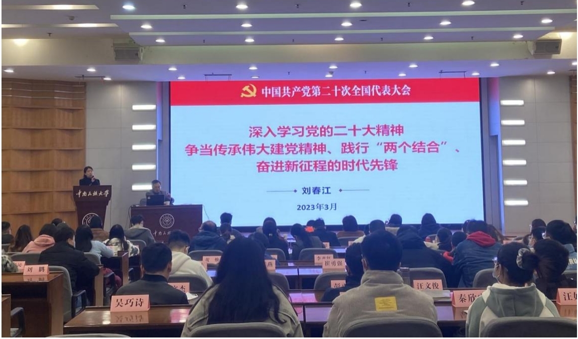 劉春江全面系統地講解了黨的二十大召開的歷史意義、現實背景及取得的豐碩成果,著重從歷史文化的角度闡釋了“兩個結合”的歷史必然、理論邏輯和實踐創新,并結合高校工作實際,指出高校師生在新時代必須把握好習近平新時代中國特色社會主義思想的世界觀和方法論,堅定“四個自信”,傳承偉大建黨精神,做奮進新征程的時代先鋒。