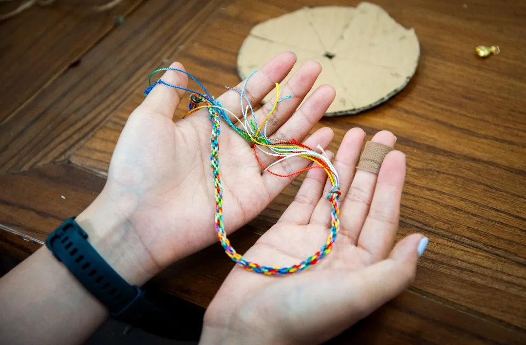 鑹捐崏鑺辨潫鍒朵綔瀹屾垚鍚庯紝鍥㈤槦鎴愬憳鍚戝悓瀛︿滑浠嬬粛浜嗕簲褰╃懷鐨勫瘬鎰忓拰緙栧埗鏂規硶錛屽悓瀛︿滑璁ょ湡瀛︿範錛屽緢蹇究緙栫粐鍑虹簿緹庣殑浜斿僵緇熾傜懷绱㈠湪鎸囧皷絀挎錛屾瘡涓縐嶉鑹查兘琚閥濡欏湴铻嶅叆璁捐涔嬩腑錛屽艦鎴愪簡涓騫呭箙鍔ㄤ漢鐨勭汗楗幫紝榪欎笉浠呮槸瀵硅瑙夌殑浜彈錛屾洿鏄鎵嬪伐鑹烘湳鐨勪紶鎵夸笌鍒涙柊銆傜鍗堜僵鎴翠簲褰╃懷鍏鋒湁紲堢綰崇ゥ銆侀伩閭┍鐏劇殑瀵撴剰錛屼翰鎵嬪埗浣滅殑浜斿僵緇蟲棤璁轟僵鎴村湪韜笂鎴栨槸璧犻佺粰浜插弸錛岄兘灝嗘垚涓虹鍗堣妭浼犻掔紱忔渶濂界殑蹇冩剰銆?/p>