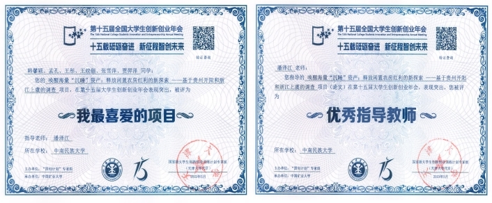 第十五屆全國大學生創新創業年會獲獎證書,舒翠翠供圖