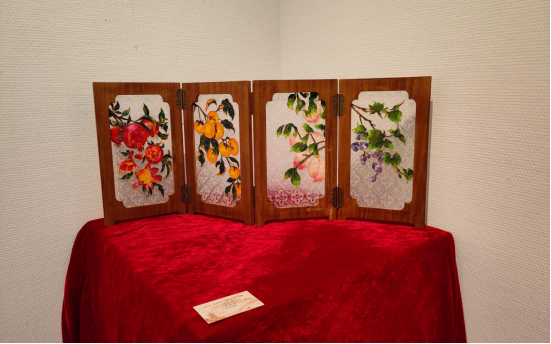 作為本次活動的“主戰場”,中南民大光谷美術館的文創優秀作品展與文創集市,更是一片熱鬧非凡的景象。一樓展廳內,120個展位的優秀作品靜靜陳列,有栩栩如生的牡丹國畫、用衍紙拼貼而成的恬靜少女、點綴了金箔的大漆手鐲……從國風繪畫到精巧的手工作品,每一件作品背后都展現了民大學子對中華優秀傳統文化創造性轉化、創新性發展的深刻思考。