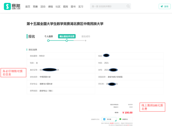 7、報(bào)名系統(tǒng)鏈接:http://www.saikr.com/cmathc/hb/2023。考生需在線填寫(xiě)準(zhǔn)確的報(bào)名信息,并及時(shí)繳納報(bào)名費(fèi)(100元)。