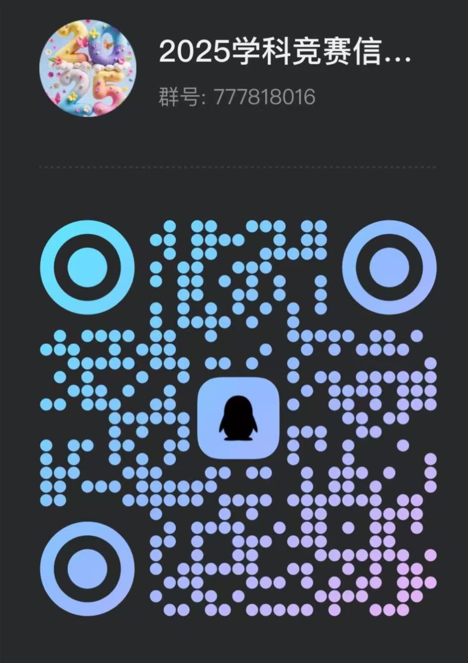 6. 所有獲獎學生(僅限第一作者)請加入“2025年學科競賽信息統計群”(QQ群號:777818016),以便核對個人或團隊獲獎信息及收集畢業生銀行卡信息等工作。