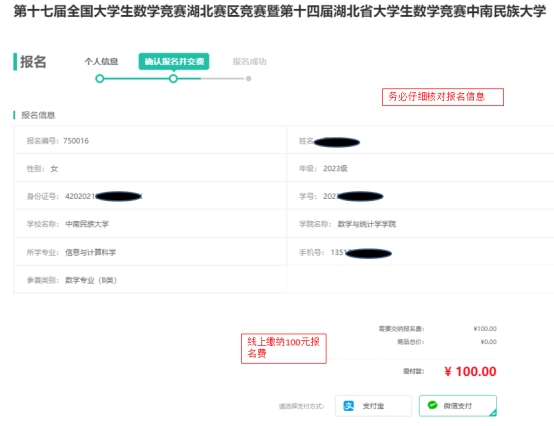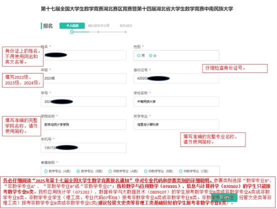 2.只能選擇自己的學校(中南民族大學)填寫報名信息。