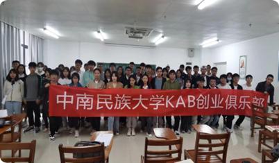 02 KAB創業俱樂部 中南民族大學KAB創業俱樂部成立于2009年6月,隸屬于中南民族大學創新創業學院,由創新創業學院潘澤江院長和張楠老師指導,接受武漢大學生創新創業服務中心和武漢青年創業培訓中的指導支持,為培養大學生的創業意識和創業能力而專門開發的教育項目。俱樂部以“讓更多人想創業,讓更多人能創業”為宗旨,主要從事創業 教育服務方面的工作,同時提升我校大學生的創業能力營造校內活躍的創業氛圍,影響和幫助更多的人實現自己的夢想。