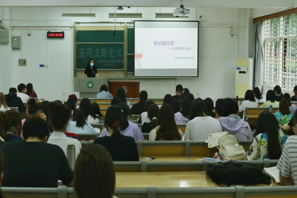 本站訊(記者:何姍姍)為深入貫徹落實學院黨史學習教育的工作要求,進一步增強學生黨員的黨史學習熱情,5月28日下午,經濟學院2018級本科生黨支部于15號教學樓120教室開展“音樂微黨課”五月主題黨日活動。黨支部書記張弘、輔導員魯睿參加會議,2018級全體本科生黨員及預備黨員到場參加。