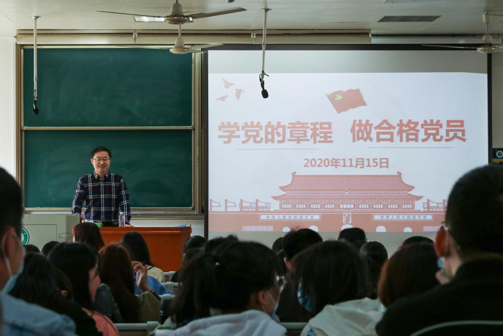 學工部副部長鄧俊熙在《學黨的章程,做合格黨員》的專題講解中通過分組學習、互相提問、自我反思等方式引導學員們學習黨的章程。他希望學員們要有主動承擔的意識與自我奉獻的精神,明確入黨初衷,擬定入黨計劃,堅守中國共產黨的初心與使命,明確黨員的責任與義務,爭做生活的明白人、同學的領導人、老師的知心人。