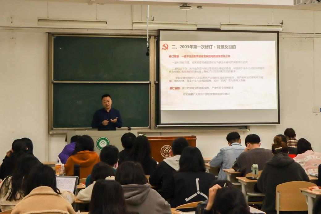 民族學與社會學學院黨委書記李從浩以解讀《中國共產黨紀律處分條例》為主題,圍繞紀律處分條例的歷次修訂、新條例的九大亮點、四十五條開除黨籍的“高壓線”及倡導真學、真信、真守四個方面進行講解。他指出,《中國共產黨紀律處分條例》的修訂關鍵在于整治管黨治黨過程中的突出問題和監督各類新型違紀行為,學員們應不斷加強理論學習,遵守黨紀黨規,做到胸懷信仰、心存戒懼、抱樸守真、謹言慎行,成為一名堅守理想信念、時刻保持理性的共產黨員。