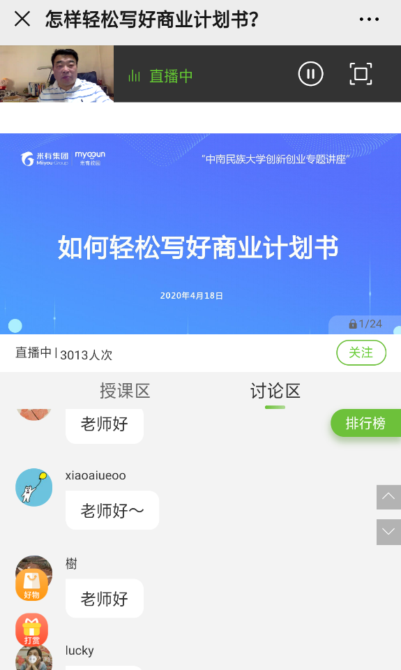本站訊(記者:樊虔旖)為普及學生創新創業常識,提高第六屆“互聯網+”商業計劃書申報質量,4月18日上午,經濟學院舉辦“如何輕松寫好商業計劃書”的線上培訓。此次培訓由“大兵小講”工作室鄒秀峰老師主持,尚鵬博老師主講,經濟學院副院長熊芳、團委書記高無盡,學院參賽學生及其他感興趣的學生參加培訓學習。