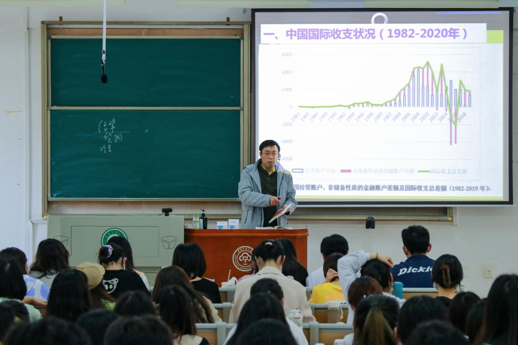 陳全功教授從知識點回顧、中國及主要發達國家國際收支狀況、中美雙邊貿易差額、美國對華貨物貿易逆差的形成原因等方面對《國際金融》課程第一章的“國際收支平衡表差額分析”專題進行講解。通過數據分析和問題引導等方式,將基礎理論與現實熱點緊密結合,詳細講述了中國改革開放進程中的巨大成就和發展經驗,引導同學們深入了解中美貿易關系和美國對華貨物貿易逆差問題,正確認識和把握當前的國際經濟格局。課后,同學們紛紛表示受益匪淺,不僅拓寬了專業知識,還堅定了理想信念,明確了政治方向。