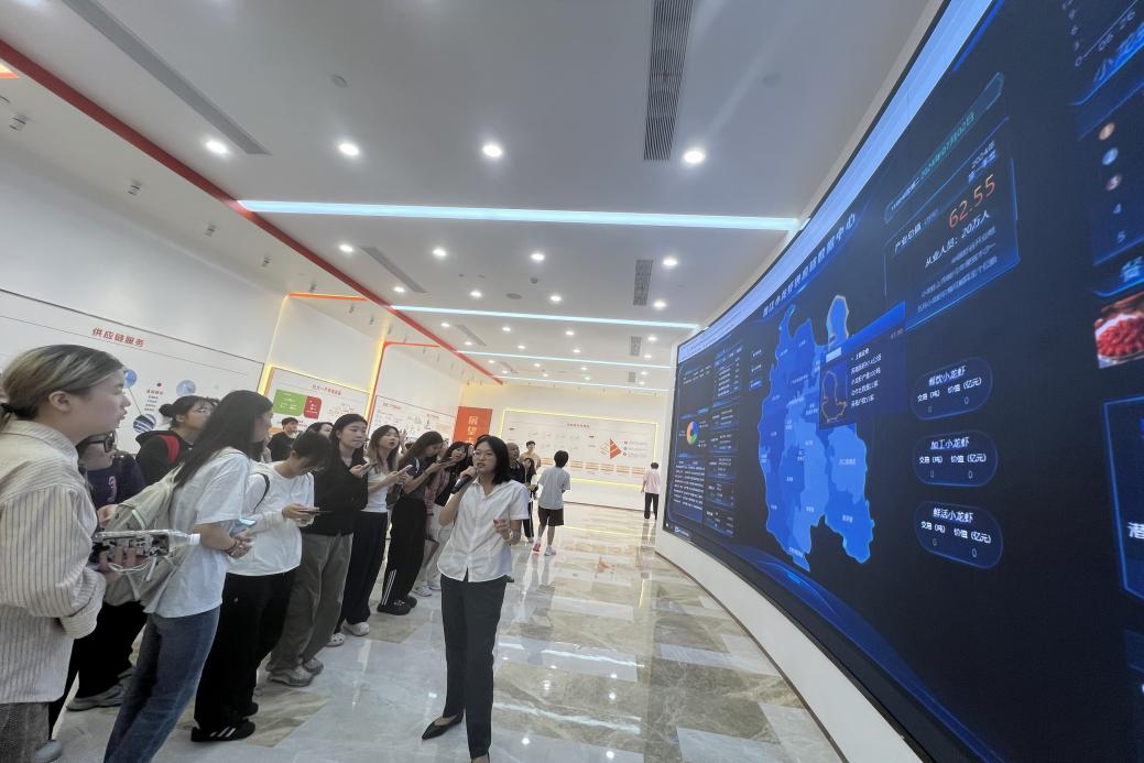 該中心下設(shè)了全球最大小龍蝦集散中心分揀生產(chǎn)線以及全球智慧物流中心,師生們通過(guò)實(shí)地觀察,切實(shí)了解到了小龍蝦混裝分揀、冷鏈倉(cāng)儲(chǔ)、冷鏈物流的相關(guān)事項(xiàng)。