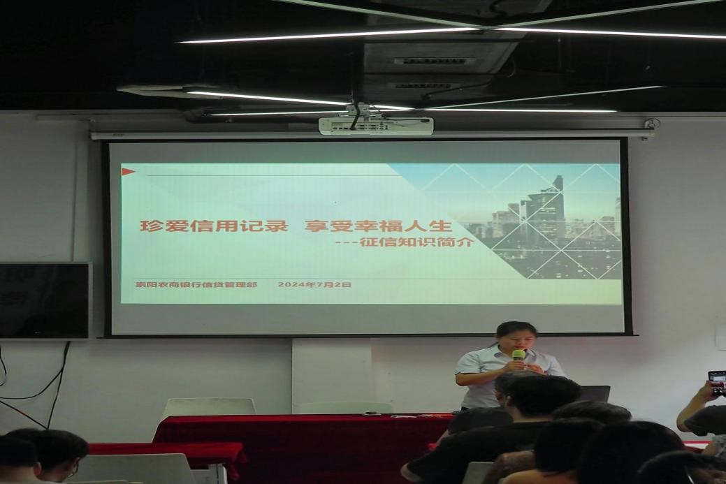 本次暑期實習,經濟學院2021級127名金融學大類專業學生前往湖北省咸寧市崇陽縣農村商業銀行。上午十時,全體師生抵達崇陽研學基地,參與了一系列高水平的鄉村金融講座。首場講座由湖北崇陽農商行信貸部的胡經理主持,他針對個人征信知識進行了精煉的介紹,旨在促進學生將課堂學習與實際工作有效對接,實現理論知識與實踐操作的有機融合,從而拓寬學生的知識視野,汲取更多書本以外的實用知識。