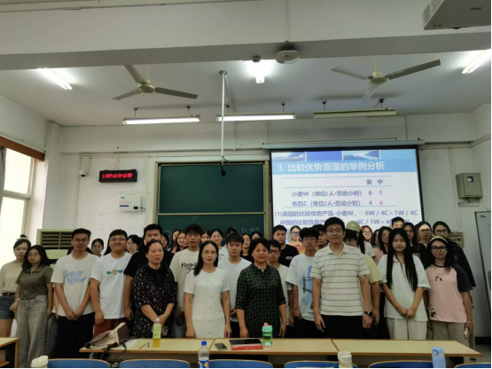 高等學校人才培養(yǎng)是育人和育才相統(tǒng)一的過程,建設高水平人才培養(yǎng)體系,必須將思想政治工作體系貫通其中,必須抓好課程思政建設。2024年9月13日上午,經濟學院揭子平老師在15號教學樓417教室講授了一堂生動的《國際經濟學》課程思政公開課。經濟學院教學副院長馬楠、國際經濟與貿易教研室余利紅和曹考老師到場觀摩交流。