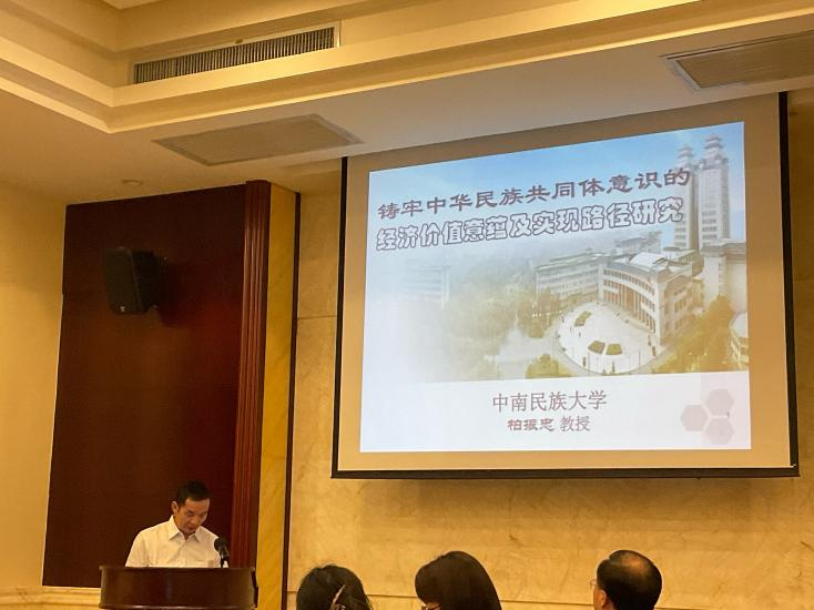 10月17日,第三屆鑄牢中華民族共同體意識研究論壇在武漢舉行,該論壇由中央統戰部、中央宣傳部、教育部、國家民委聯合主辦,武漢大學與湖北省民宗委承辦。國家民委專職委員(正部長級)秦宜智、湖北省副省長陳平、武漢大學黨委書記黃泰巖出席開幕式并致辭,中央統戰部民族工作局局長華彥龍主持開幕,國家民委理論研究司司長陳首主持閉幕。中南民族大學經濟學院、鑄牢中華民族共同體意識研究基地教授、博士生導師柏振忠受邀參會,并在分論壇上作報告。