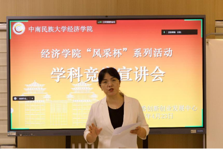 學科競賽是培養學生創新精神與實踐能力的重要途徑。4月23日晚,經濟學院在北區“一站式”學生社區大會議室舉辦“風采杯”系列活動之學科競賽宣講會。胡亞蘭老師、熊岳煒老師,李少卓、谷源、程欣睿3位同學應邀為學生介紹常見的學科競賽及備賽方法。